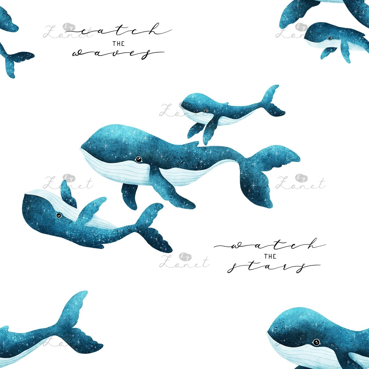 Whales "watch the stars" blue - 20 cm