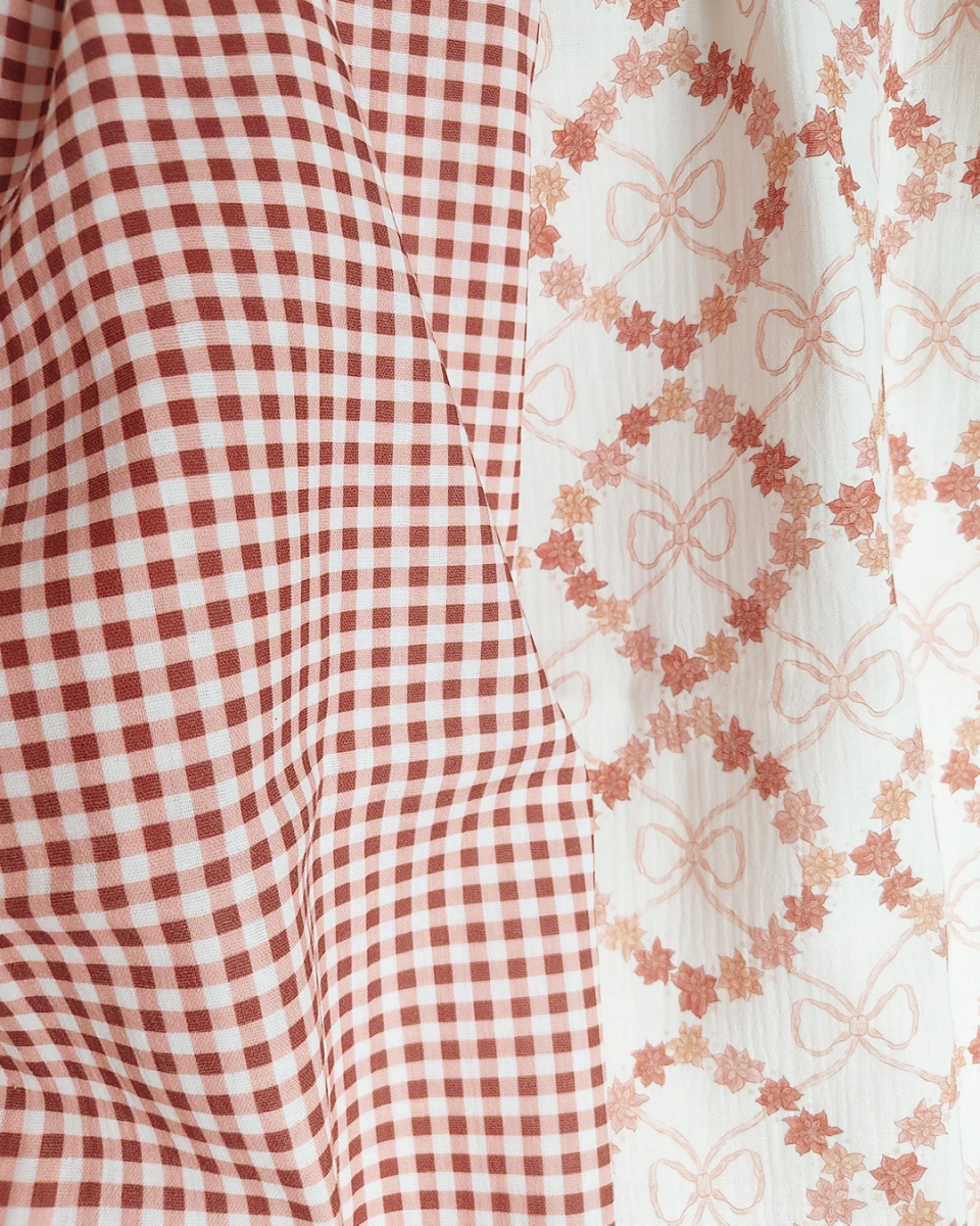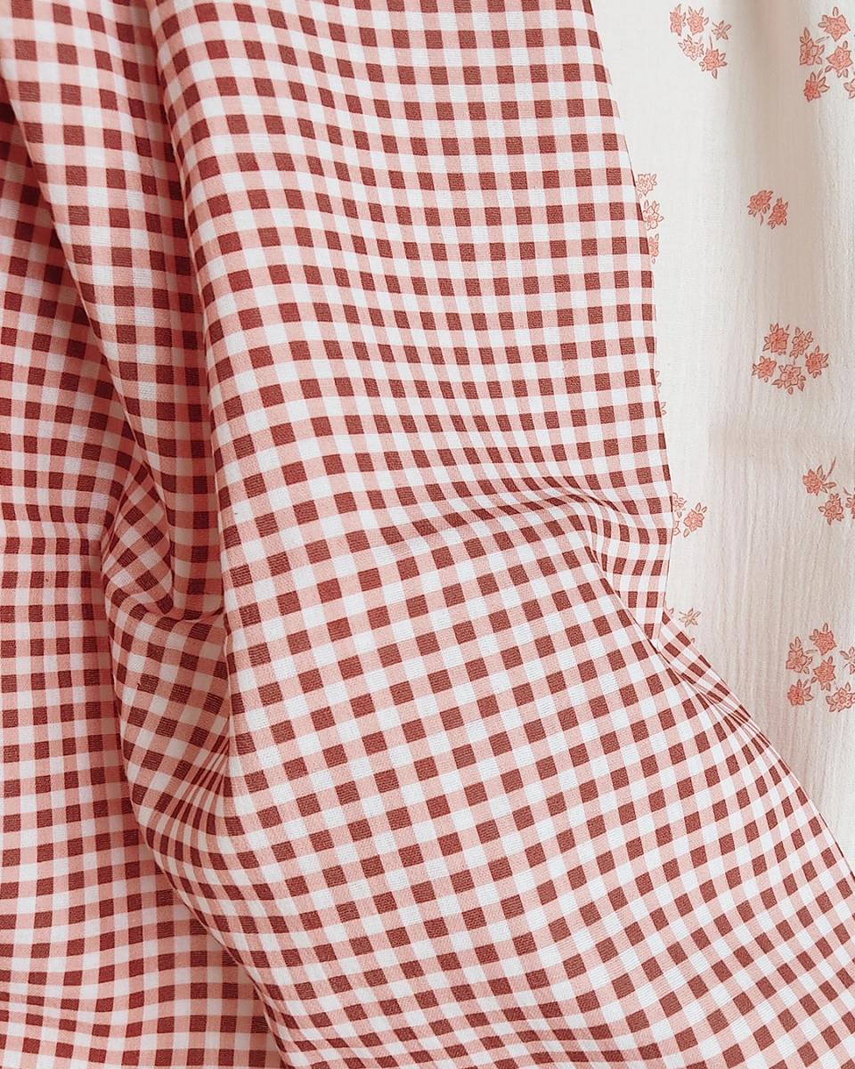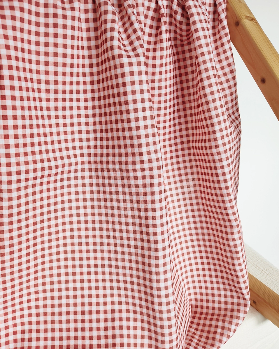 Vichy checks in warm dark red berry, pink and white color - add dash of vintage charm to your next sewing project such as lady clothing, tops, dresses, blankets, girl and woman accessories.